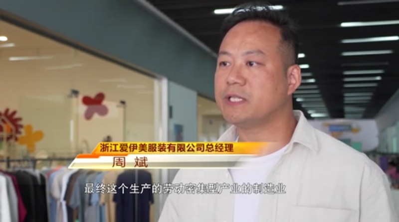 浙江爱伊美服装有限公司总经理 周斌:像柬埔寨、孟加拉、越南,我们前期也做了一定的考察,最终这个生产的劳动密集型产业的制造业肯定是要转移出去的。